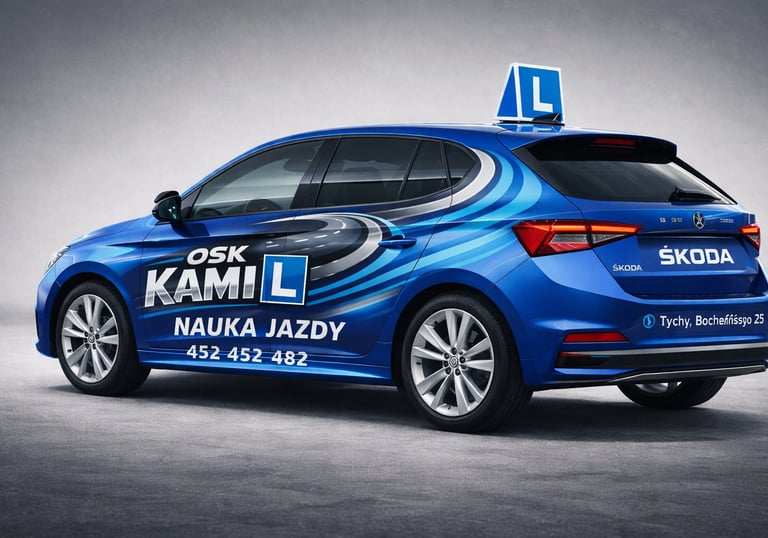 Szkolimy przyszłych kierowców na pojeździe Skoda Fabia IV, w takiej samej wersji jak pojazd egzaminacyjny WORD, z wygodnym e-learningiem.